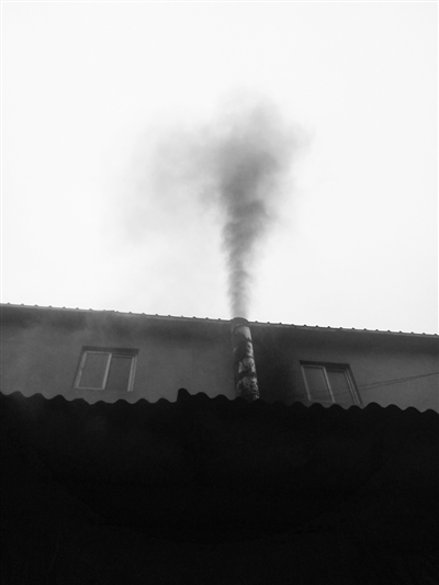 在建新莊的一個大院里,自燒鍋爐房的煙囪冒出了濃煙,由于長時間的熏烤,緊挨煙囪的墻壁也變黑了。