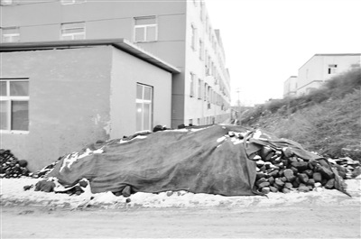北五環外奶子房村的一座4層樓房背后,堆放著大堆用來取暖的散煤。