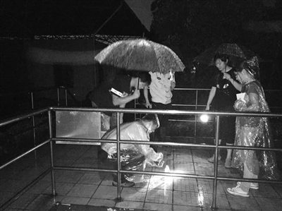 圖為執法人員正在冒雨采樣。張躍躍攝