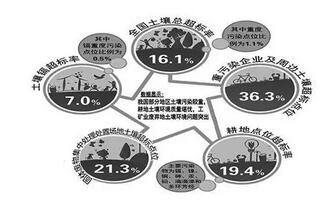 環(huan)保部2014年公布的《全國(guo)(guo)土壤(rang)污染(ran)狀(zhuang)況調查報告》顯(xian)示,全國(guo)(guo)土壤(rang)環(huan)境(jing)狀(zhuang)況總(zong)體不容(rong)樂觀,全國(guo)(guo)土壤(rang)總(zong)的超標(biao)率為16.1%。16.1%是(shi)點(dian)(dian)位(wei)超標(biao)率,也就(jiu)是(shi)說(shuo)土壤(rang)采樣(yang)點(dian)(dian)中16.1%是(shi)超標(biao)的,指的并不是(shi)土壤(rang)污染(ran)面積的比(bi)例(li)。