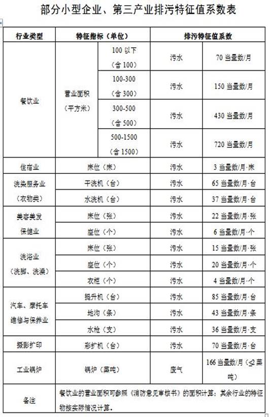 2.無法準確(que)計量污(wu)水排放量和用水量的小型企業(ye)和第三產(chan)(chan)業(ye),按照(zhao)《部分小型企業(ye)、第三產(chan)(chan)業(ye)排污(wu)特(te)(te)征值系(xi)數表》(見附件(jian)1)規(gui)定(ding)的特(te)(te)征指(zhi)標和排污(wu)特(te)(te)征值系(xi)數直接計算確(que)定(ding)水污(wu)染物的污(wu)染當量數(即(ji)環境保護稅計稅依(yi)據,下同)。