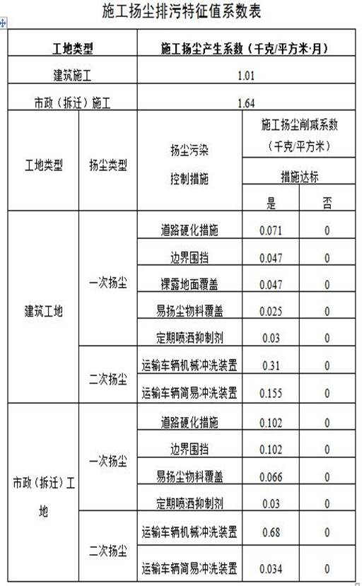 3.施工揚塵(chen)排污特(te)征值系數表