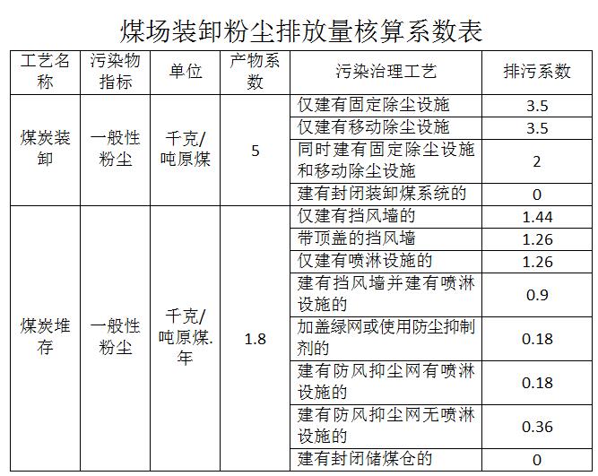 4.如存在(zai)臨(lin)時堆場裝(zhuang)卸(xie)堆存行為的,直接(jie)按照產污系數核定煤粉塵排放量。