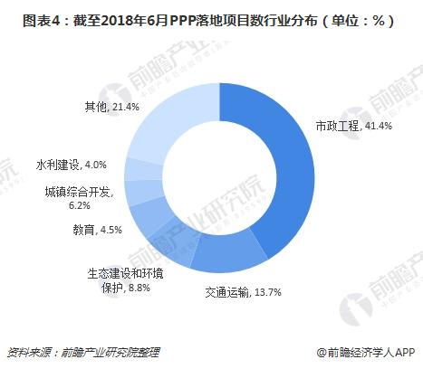 截至2018年6月,累計落地項目數前三位是市政工程、交通運輸、生態建設和環境保護,分別是1520個、504個和323個,合計占落地項目總數的63.9%。市政工程主要是指城市基礎設施建造,投資額占比35.5%;交通運輸24.7%;生態建設7.5%;水利建(jian)設(she)2.2%;政府基(ji)礎設(she)施1.7%;PPP項目中涉及基(ji)建(jian)投資額占比為71.6%。