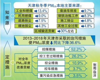 成果顯(xian)示,天津重污染(ran)(ran)天氣(qi)是污染(ran)(ran)物(wu)本地(di)累積、區域(yu)傳輸和二次(ci)轉化(hua)綜合作(zuo)用的結(jie)果,在秋冬(dong)季期間(jian)平(ping)均狀態下PM2.5貢獻(xian)中,本地(di)一次(ci)污染(ran)(ran)物(wu)排放占40%左右,區域(yu)傳輸占30%左右。
