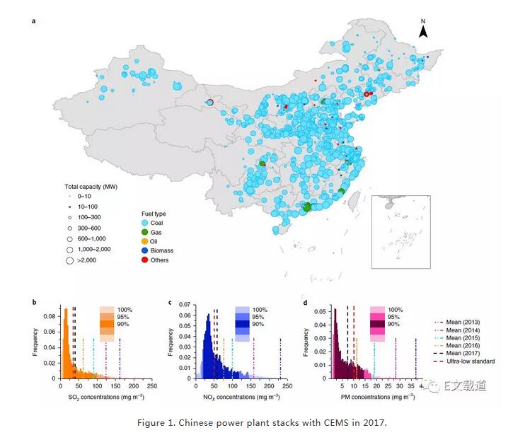 如下圖所示,a圖涵蓋(gai)了2017年(nian)(nian)全國4622座電廠(chang)的地理(li)分(fen)(fen)布、燃料類(lei)型和(he)產能情況。根據(ju)往年(nian)(nian)數據(ju)可以分(fen)(fen)析得出,從(cong)2014年(nian)(nian)到2017年(nian)(nian),SO2、NOx和(he)PM2.5的平均濃度(du)分(fen)(fen)別下降33.34%、28.29%和(he)38.06%,達標率(lv)也從(cong)2014年(nian)(nian)的15.63%、10.47%和(he)15.79%提升到2017年(nian)(nian)的74.54%、70.64%和(he)87.50%。