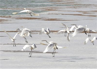 保護區的濕地內白鷺翔集。哈巴湖國家級自然保護區供圖