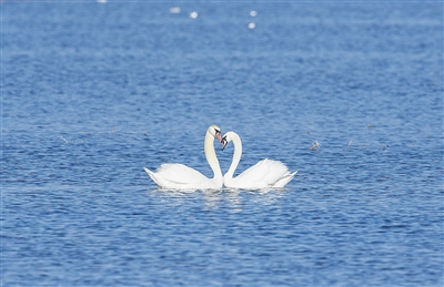 烏梁素海天鵝在嬉戲