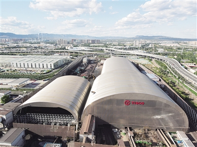 “你(ni)看(kan),這(zhe)就是(shi)我(wo)們公司現(xian)在的(de)原料庫。每個原料庫占地6萬(wan)平方米,相當(dang)于8.5個足球場那么大。”隨(sui)太鋼不銹能源環保部項目評審(shen)室(shi)主任程志民手(shou)指的(de)方向,記者遠遠看(kan)見3個半(ban)圓狀的(de)高(gao)大建筑,在陽光(guang)的(de)照耀(yao)下,閃(shan)閃(shan)發(fa)光(guang)。