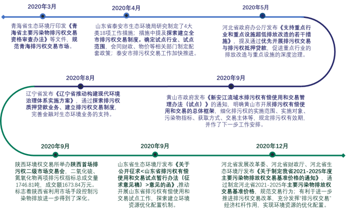 2020年,排污權交易市場的整體建設進展緩慢,但仍有部分地方通過啟動排污權交易二級市場、制定主要污染物排放權交易基準價格等方式推動排污權市場發展。