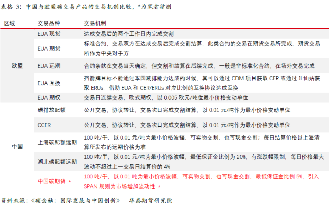 我(wo)們預(yu)(yu)計國(guo)內碳(tan)期(qi)(qi)貨(huo)的(de)合(he)約設置將(jiang)參(can)(can)考(kao)歐盟(meng)的(de)形式(shi),以季月合(he)約為(wei)主。且從歐盟(meng)市場(chang)流動性的(de)做法,和(he)地方(fang)試點過(guo)程(cheng)中(zhong)流動性的(de)對比考(kao)量(liang)(liang),預(yu)(yu)計將(jiang)通過(guo)增加參(can)(can)與者(zhe)類(lei)型(xing)的(de)方(fang)式(shi)為(wei)期(qi)(qi)貨(huo)市場(chang)引入更多類(lei)型(xing)參(can)(can)與者(zhe)、增加期(qi)(qi)貨(huo)合(he)約的(de)市場(chang)流動性。同時,由(you)于中(zhong)國(guo)碳(tan)市場(chang)和(he)發達(da)(da)經濟體最大的(de)結構(gou)性差異在(zai)于她本質上是一個碳(tan)排(pai)(pai)放(fang)繼(ji)續增長(chang)的(de)市場(chang),最晚于2030年碳(tan)排(pai)(pai)放(fang)總量(liang)(liang)達(da)(da)到峰(feng)值(即達(da)(da)峰(feng)前),而歐盟(meng)等(deng)發達(da)(da)經濟體處在(zai)達(da)(da)峰(feng)后、中(zhong)和(he)前。因(yin)而國(guo)內碳(tan)供需短期(qi)(qi)矛(mao)盾并不(bu)如(ru)歐盟(meng)那么明(ming)顯。