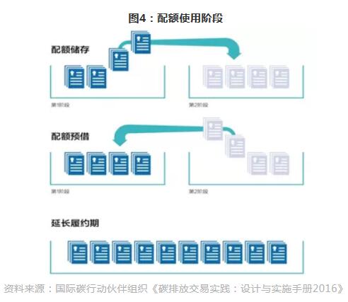 時間靈活性機制允許控排企業,隨時間推移以最符合成本效益的方式管理碳排放。通過配額儲存,企業可將某一時期內發放的碳排放配額留存起來,供后續履約期需要時使用。配額預借則與之相反。控排企業通過從未來履約期預借碳排放配額供當下履約期使用,以此推遲購買配額或推遲減排(例如推遲到技術更成熟即價格更低時)。延長履約期的時間長度亦可在何時購買配額或何時減排方面為企業帶來靈活性。
