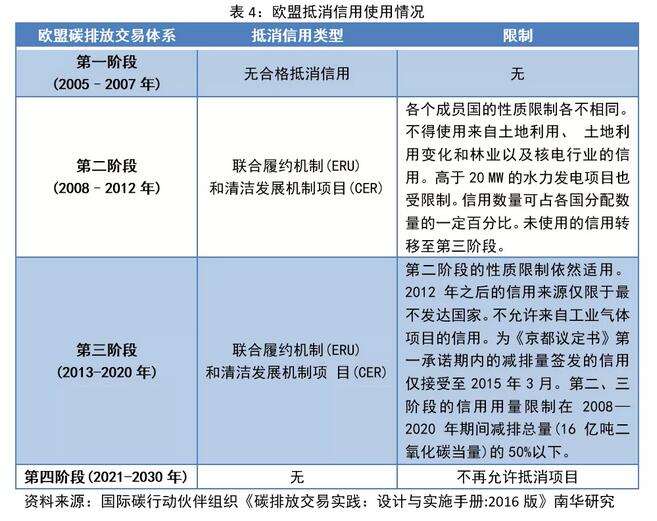 [4]每單位抵消信用等價于一單位配額的減排量。《京都議定書》中約定的三種靈活市場化機制就定義了三種抵消信用,在國際排放交易機制(IET)下被稱為分配數量AAU的排放單位,清潔發展機制(CDM)下與發展中國家可獲得的核證減排量(CER)抵消信用,以及聯合履約機制(JI)下減排單位(ERU),以上機制的設計在各國之間創建了可相互鏈接的交易單位體系,促成減排目標的完成。