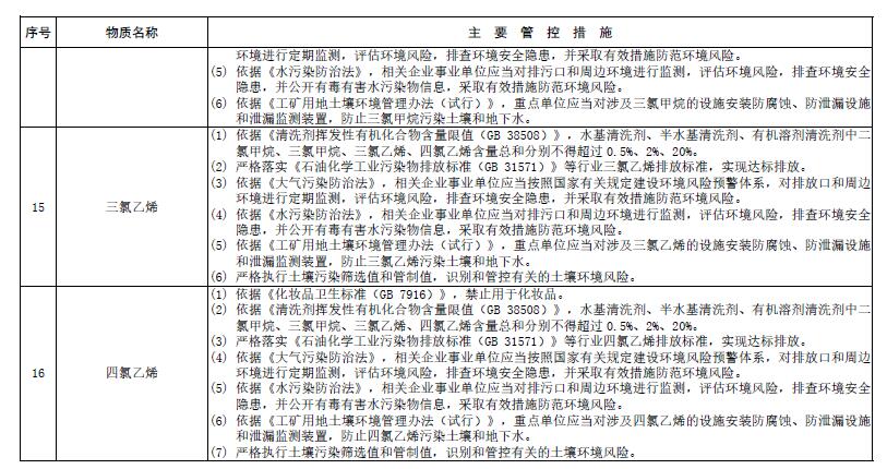 (十五)加強新污染物多環境介質協同治理。制定相關污染控制技術規范,加強對有毒有害大氣污染物、有毒有害水污染物環境治理。排放重點管控新污染物的企事業單位,應采取有效的污染控制措施,滿足相關污染物排放控制標準及環境質量目標要求,按照排污許可管理有關要求,依法申領排污許可證或填寫排污登記表,將執行的污染控制標準要求及采取的污染控制措施在其中予以載明。