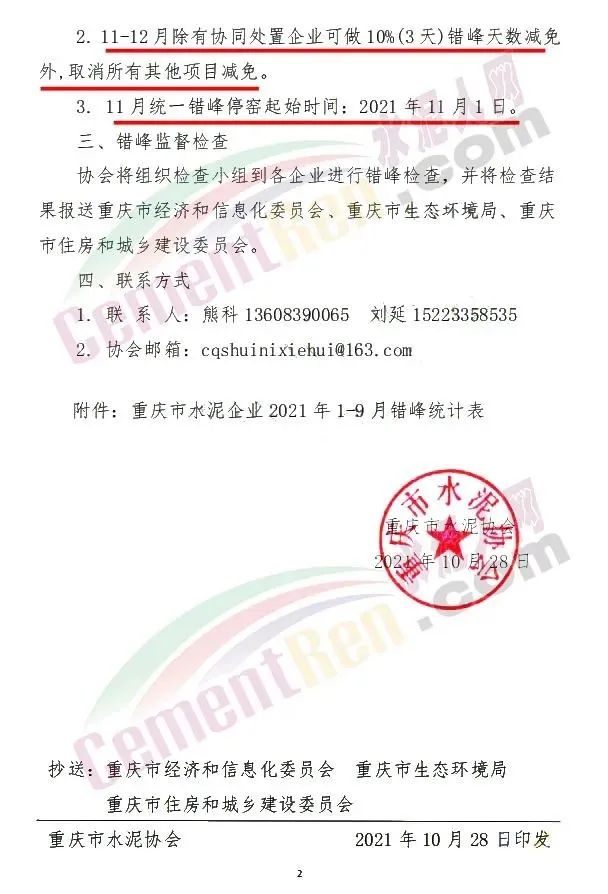 3.11月統一錯峰停窯起始時間:2021年11月1日。