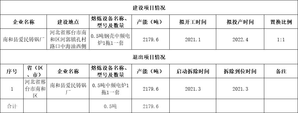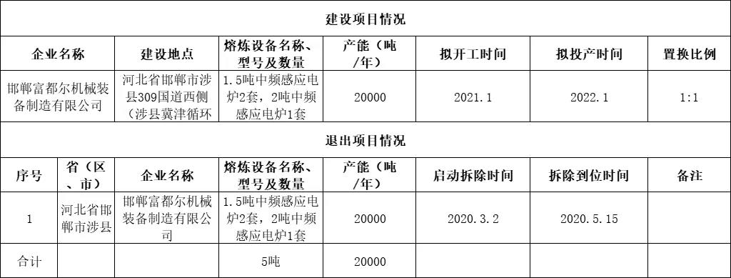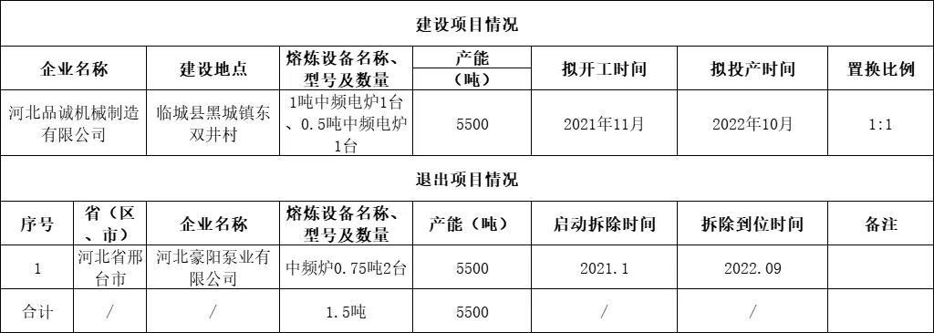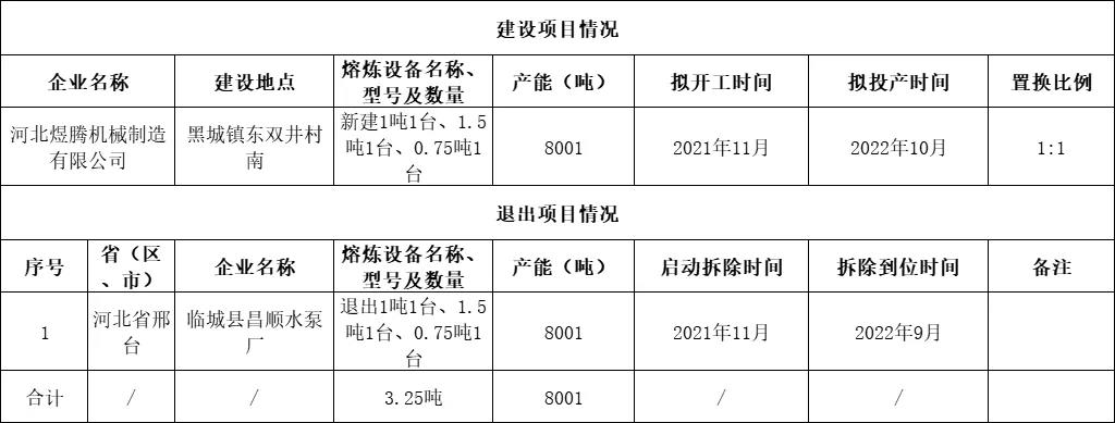 河北太行動力機械科技有限公司等18家鑄造企業產能置換方案公示