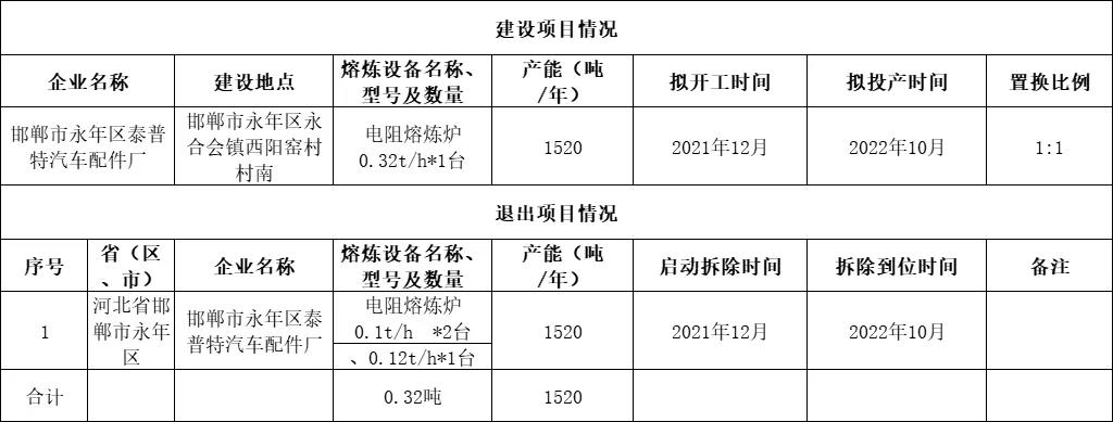 河北太行動力機械科技有限公司建設項目產能置換方案
