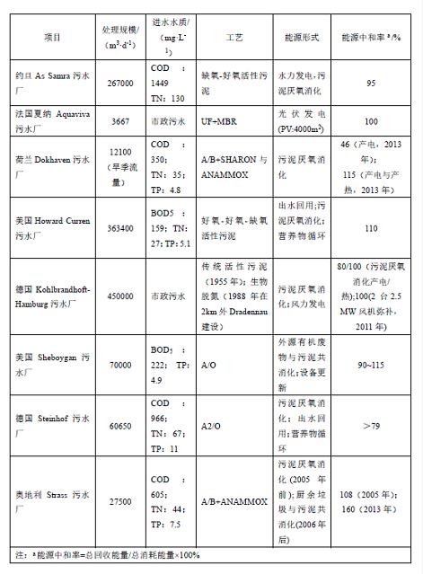 表1總結了國外一些致力于碳中和運行的污水處理廠情況。這些實例表明,基于剩余污泥有機物能源,即剩余污泥厭氧消化產CH4,可以滿足或最大程度滿足能源中和運行目標。然而,剩余污泥產量的多寡又受進水有機物濃度的限制,并不一定能完全滿足能源中和運行的需要,這就需要考慮利用污水余溫中所蘊藏的可觀熱量。