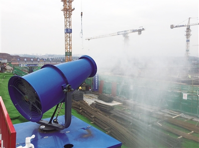 圖為施工工地正進行灑水降塵。沙坪壩區生態環境局供圖