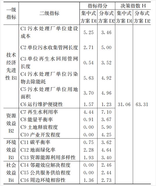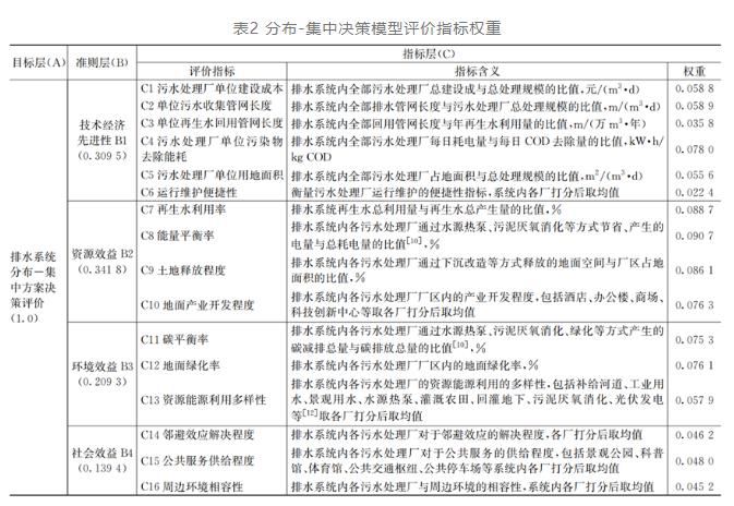 (1)針對排水系統分布式建設方案和集中式建設方案的決策比選,從技術經濟先進性、資源效益、環境效益、社會效益四個方面16個指標,首次構建了排水系統分布-集中方案的綜合性決策模型。