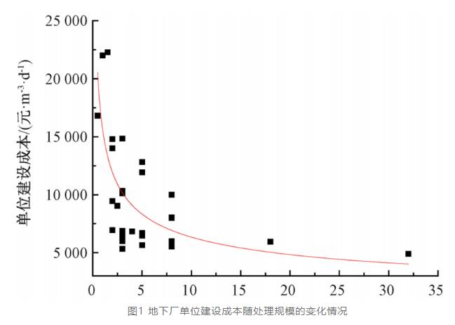 式中 P——地下廠單位建設成本,元/(m³·d);