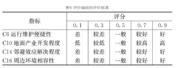 其余指標采用5級劃分法進行評分,評價標準見表4。
