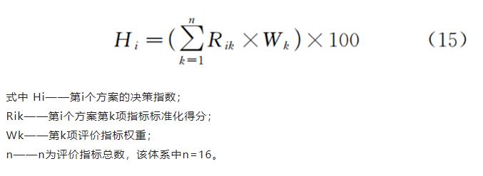 (3)為使評價模型具有普遍可比性,針對確定性指標,采用離差標準化法構建可通用的標準化函數,針對非確定性指標,采用5級劃分法,最終以決策指數H作為評價指標,易于方案比選與深入分析。