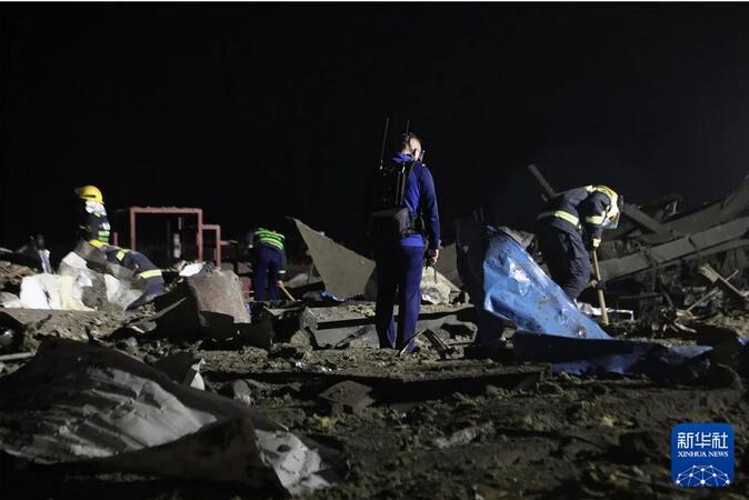 這是6月17日凌晨拍攝的事故現場,消防救援人員正在搜救。新華社記者 張智敏 攝