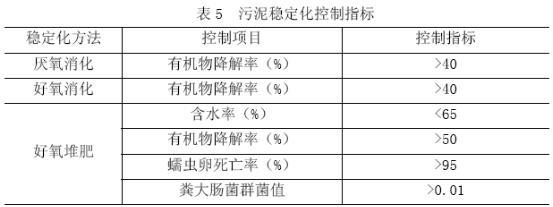 4.3.1 城鎮污水處理廠的污泥應進行穩定化處理,穩定化處理后應達到表5 的規定。