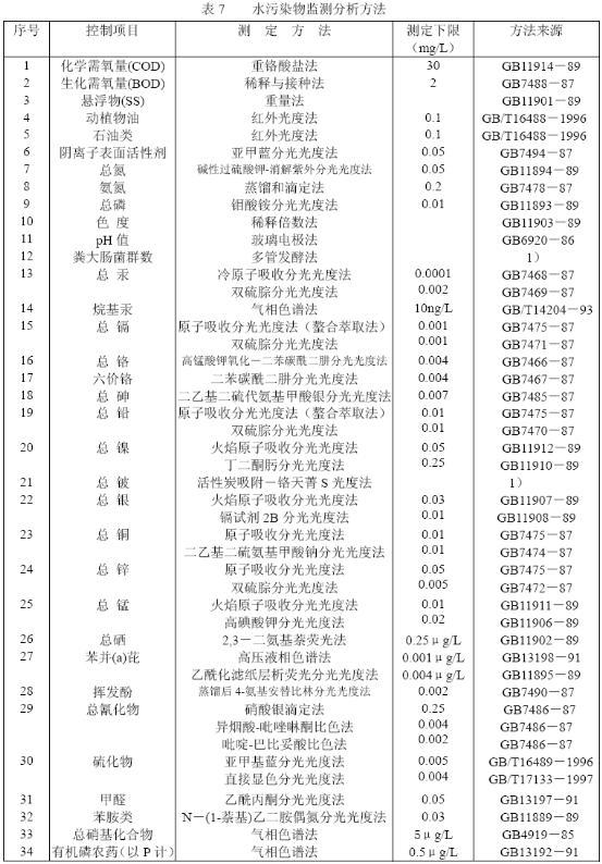 4.1.4.3 監測分析方法按表7 或國家環境保護總局認定的替代方法、等效方法執行。