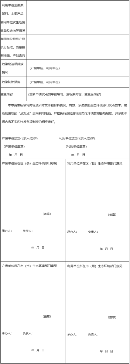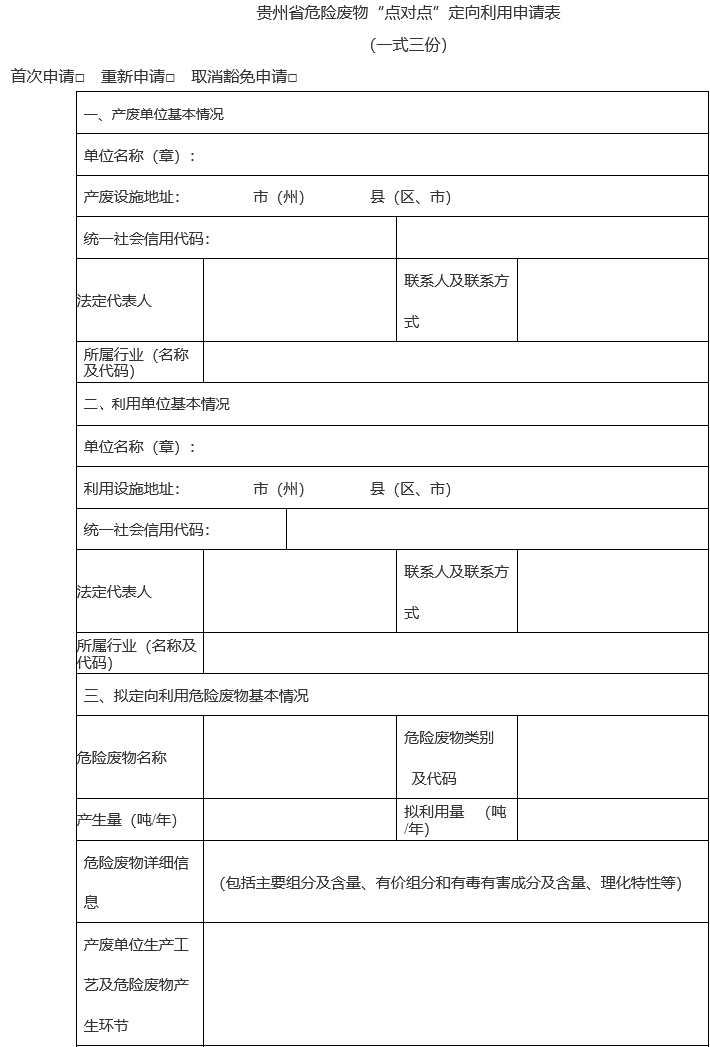 附件:1.貴州省危險廢物“點對點”定向利用豁免管理申請表