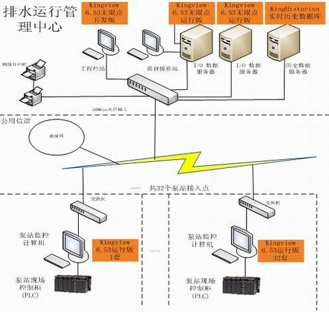 針對目前給排水領域大型泵站群地理位置分散,待處理的數據實時性強,數據量大等特點,北京亞控科技提出以HMI軟件KingView,數據采集軟件King IO Sever,工業實時數據庫KingRDB及門戶信息網站King WebServer為基礎,并融合了現場通信技術,數據庫技術,WEB技術,SCADA/HMI技術,C/S技術等的一體化的數據采集監控系統整體解決方案。