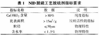 NID脫硫工藝對脫硫劑的指標要求見表1。
