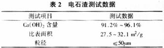 浙江巨化集團公司熱電廠委托美國阿蘭柯環境技術(北京)有限公司對幾家企業產生的電石渣進行了物理化學特性分析,得出了一致的結果(見表2)。