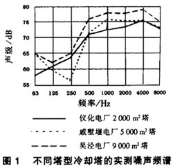 在距進風口底緣即一般倒(dao)t形塔(ta)基的水池邊(bian)沿5m 處,測高點 1.2 m[1],測得的一些自(zi)然通風冷卻塔(ta)的實測噪聲及其頻譜見圖1。
