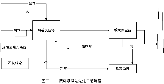 循環懸浮半干法煙氣凈化技術是浙江大學獨立開發的專利技術,其工藝技術具有上述兩種技術的部分特點,既有反應器內霧化噴水,又有飛灰循環。因此,該技術既有上述技術的優點,如取消了故障率較高的噴漿系統,增加了灰循環,提高脫酸劑的利用率和脫酸效率,但也存在這兩種技術的缺點,如噴嘴易損,粘壁等。另外,直接噴水霧化,若霧化效果不佳,則可能會造成煙氣帶水,布袋除塵器出現“糊袋”現象。