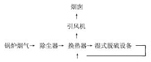 鍋爐煙氣→干或半干式脫硫→除塵器→引風機→煙囪
