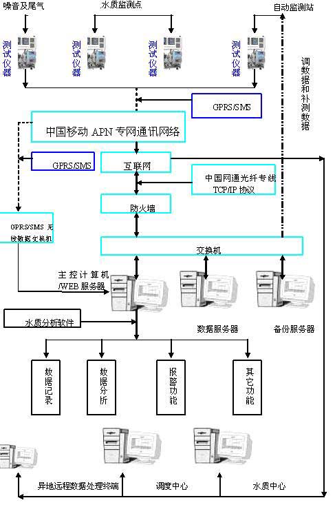 1)整合GPRS/CDMA/寬帶通訊技術,實時監視重點污染源瞬時流量、累積流量、污染物濃度、污染物排放總量等數據,實時控制現場設備的運行狀態;整合GPRS/CDMA/寬帶通訊技術,傳輸全市大氣和水自動監測數據到環保局中心控制室。