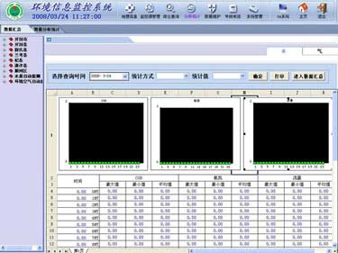提供多種條件查詢方式和查詢結果分類、分項排序、統計最大值、最小值、平均值、匯總值等分析處理功能。提供統計各類監測數據功能,如流量統計;COD、氨氮濃度分析;COD、氨氮排放總量統計;煙氣流量統計;煙氣、煙塵、CO、SO2、NOx濃度分析;煙氣、煙塵、CO、SO2、NOx排放總量統計等。提供查詢結果打印功能