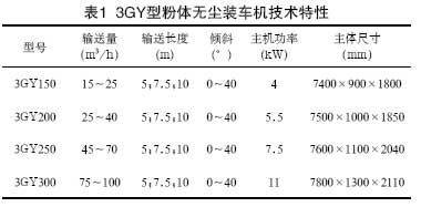 該設備按粉體輸出與裝車的實際需要,可分為4個系列12個產品規格(見表1);也可按用戶需要設計與制造不同規格的非標準設備。