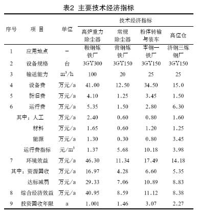 按四種應用類別和實際運行工況的綜合分析,主要技術經濟指標見表2。