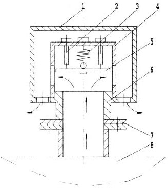 1.帽;2.定位螺(luo)釘(ding);3.彈簧;4.上體(ti);5.閥片;6.下體(ti);7.法蘭(lan);8.電(dian)收塵系統