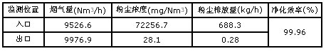 經(jing)遼陽市環境保護(hu)監測(ce)站測(ce)試,電收塵器收塵效果見表(biao)。