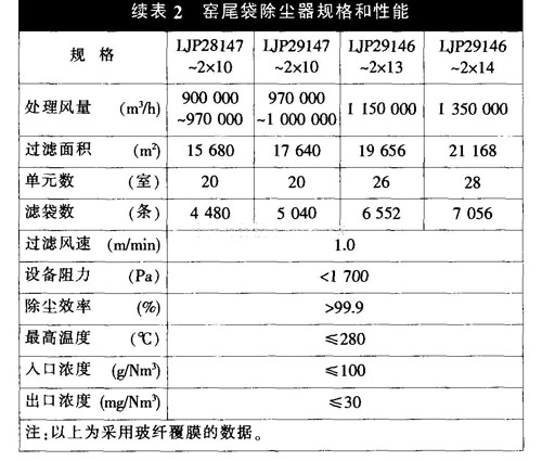 根據過濾面積。對照相應除塵器的規格和性能進行選擇.LJP系列袋除塵器部分產品的規格和性能參數見表2。