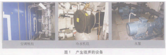 地鐵環控通風系統一般是由隧道通風系統、車站通風空調系統以及空調水系統構成的,系統功能主要是通過各種不同類型的風機、空調機組、冷水機組、水泵、冷卻塔等設備(圖 1)的運行來實現和完成,這些設備運行時產生的振動與噪聲就成為地鐵環控通風系統的主要噪聲源。空調通風設備運行產生的噪聲會通過不同的途徑傳播到地鐵車站公共區、設備管理用房以及地面區域從而形成噪聲污染。地鐵環控通風系統中通風空調設備正常運行時產生的噪聲主要包括機械振動噪聲、電機運轉噪聲及空氣動力性噪聲等。