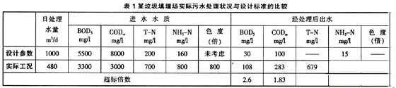 通過(guo)(guo)對(dui)某填(tian)埋(mai)場的(de)(de)滲(shen)(shen)濾(lv)液(ye)處(chu)理(li)(li)情況進行調查發現(xian),填(tian)埋(mai)場運行至今,大(da)約(yue)(yue)處(chu)理(li)(li)了(le)約(yue)(yue)80萬(wan)噸的(de)(de)滲(shen)(shen)濾(lv)液(ye),同時約(yue)(yue)有(you)32萬(wan)噸的(de)(de)滲(shen)(shen)濾(lv)液(ye)從污(wu)水(shui)(shui)(shui)庫中溢(yi)出(chu)直接進入納(na)污(wu)水(shui)(shui)(shui)域(yu),并且(qie)(qie)目(mu)前還(huan)有(you)9.6萬(wan)噸滲(shen)(shen)濾(lv)液(ye)存(cun)儲于污(wu)水(shui)(shui)(shui)庫內。經(jing)過(guo)(guo)化學分析(xi)(xi),在污(wu)水(shui)(shui)(shui)庫出(chu)口處(chu)的(de)(de)滲(shen)(shen)濾(lv)液(ye)CODcr平均值(zhi)(zhi)為(wei)2800mg/l,BOD5平均值(zhi)(zhi)為(wei) 1750mg/l,氨(an)氮(dan)708mg/l,總(zong)氮(dan)平均濃(nong)度(du)達(da)700mg/l,平均色(se)度(du)達(da)251度(du),金屬(shu)含(han)量(liang)不高(gao),以色(se)質聯(lian)機對(dui)有(you)機物(wu)定(ding)性分析(xi)(xi),發現(xian)滲(shen)(shen)濾(lv)液(ye)中有(you)機物(wu)最高(gao)含(han)碳數(shu)可達(da)12,主(zhu)要為(wei)環(huan)烷(wan)烴(jing)、酯(zhi)類、羧(suo)酸類、苯酚和硫磺等。經(jing)過(guo)(guo)處(chu)理(li)(li)后排(pai)入納(na)污(wu)水(shui)(shui)(shui)域(yu)的(de)(de)水(shui)(shui)(shui)質CODcr值(zhi)(zhi)為(wei)283mg/l,仍(reng)超標(biao)1.83 倍,BOD5值(zhi)(zhi)為(wei)108mg/l,超標(biao)2.6倍,NH3-N值(zhi)(zhi)為(wei)190mg/l,超標(biao)11.67倍,總(zong)氮(dan)679mg/l,色(se)度(du)133度(du),并且(qie)(qie)含(han)有(you)大(da)量(liang)有(you)機物(wu),說明(ming)了(le)該(gai)場污(wu)水(shui)(shui)(shui)處(chu)理(li)(li)過(guo)(guo)程還(huan)未能滿足(zu)污(wu)水(shui)(shui)(shui)達(da)標(biao)排(pai)放(fang),受此影響,該(gai)填(tian)埋(mai)場的(de)(de)一級納(na)污(wu)水(shui)(shui)(shui)體(ti)的(de)(de)水(shui)(shui)(shui)質已經(jing)明(ming)顯惡(e)化。這(zhe)一情況已經(jing)引起當地部(bu)門的(de)(de)高(gao)度(du)重視。