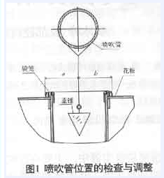 首先在噴(pen)(pen)吹孔位置吊一重(zhong)錘(chui),使重(zhong)錘(chui)線(xian)與噴(pen)(pen)吹孔中心線(xian)在同一條直(zhi)線(xian)上(shang)。然后測(ce)量重(zhong)錘(chui)線(xian)到袋籠口外圈的(de)(de)(de)(de)距離(在垂直(zhi)噴(pen)(pen)吹管(guan)的(de)(de)(de)(de)直(zhi)徑方向(xiang)測(ce)量),然后對(dui)比測(ce)出的(de)(de)(de)(de)尺寸a、b,松(song)開噴(pen)(pen)吹管(guan)尾部(bu)(bu)的(de)(de)(de)(de)固定(ding)(ding)螺(luo)栓(shuan),調節(jie)噴(pen)(pen)吹管(guan)尾部(bu)(bu)的(de)(de)(de)(de)位置,使a、b相等。然后擰緊噴(pen)(pen)吹管(guan)尾部(bu)(bu)的(de)(de)(de)(de)固定(ding)(ding)螺(luo)栓(shuan)。噴(pen)(pen)吹管(guan)位置的(de)(de)(de)(de)檢查調節(jie)過(guo)程完畢。