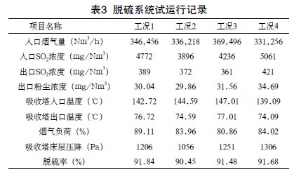 3.3 脫硫系統試運行記錄(見表3)