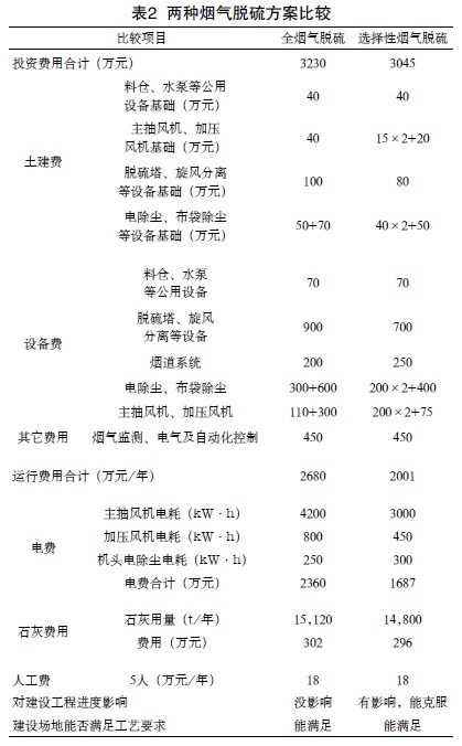 2 全煙氣脫硫與選擇性脫硫工藝方案的比較
