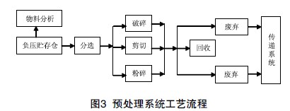 危險廢物在焚燒前(qian)需進行預(yu)處理。預(yu)處理系統(tong)工藝流程見圖3。